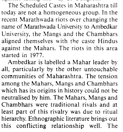 Now, let us see whether the SCs during and after the elections were ever an united community or even there did they have leaders based on their sub-caste. I will take a look at a JSTOR paper by Neera Burra titled: “Was Ambedkar Just a Leader of the Mahars?”