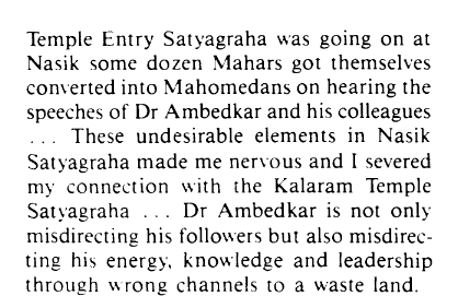 PN Rajbhoj departed from a movement was trying to ensure temple entry for Depressed classes into the Kalaram temple due to his statement as some Mahars converted to Islam after hearing the statement of Dr Ambedkar wanting to convert out of Hinduism.